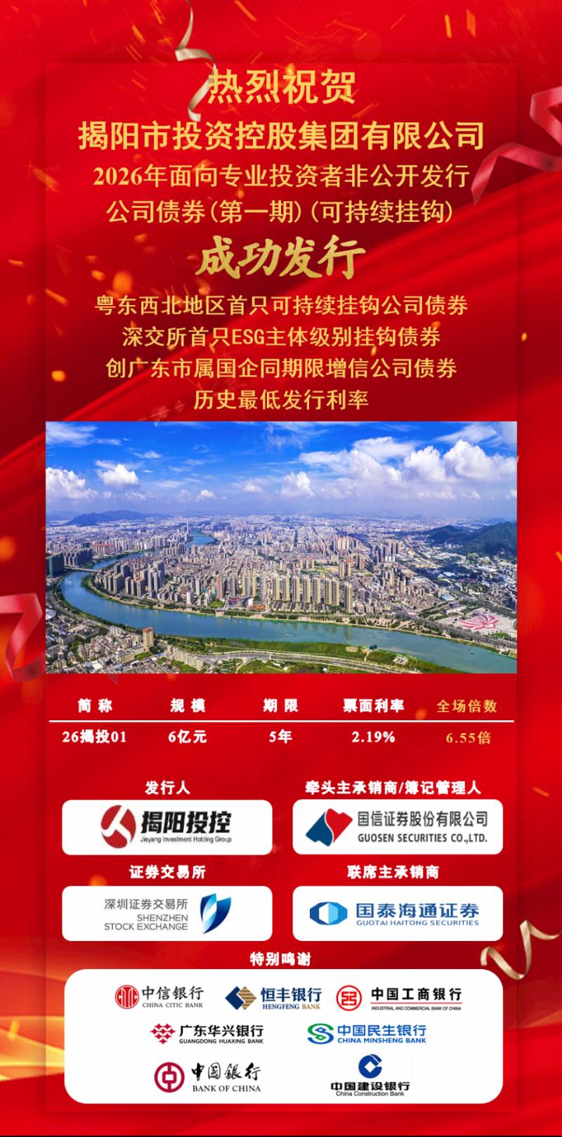 揭陽市投資控股集團(tuán)有限公司2026年第一期公司債券發(fā)行成功